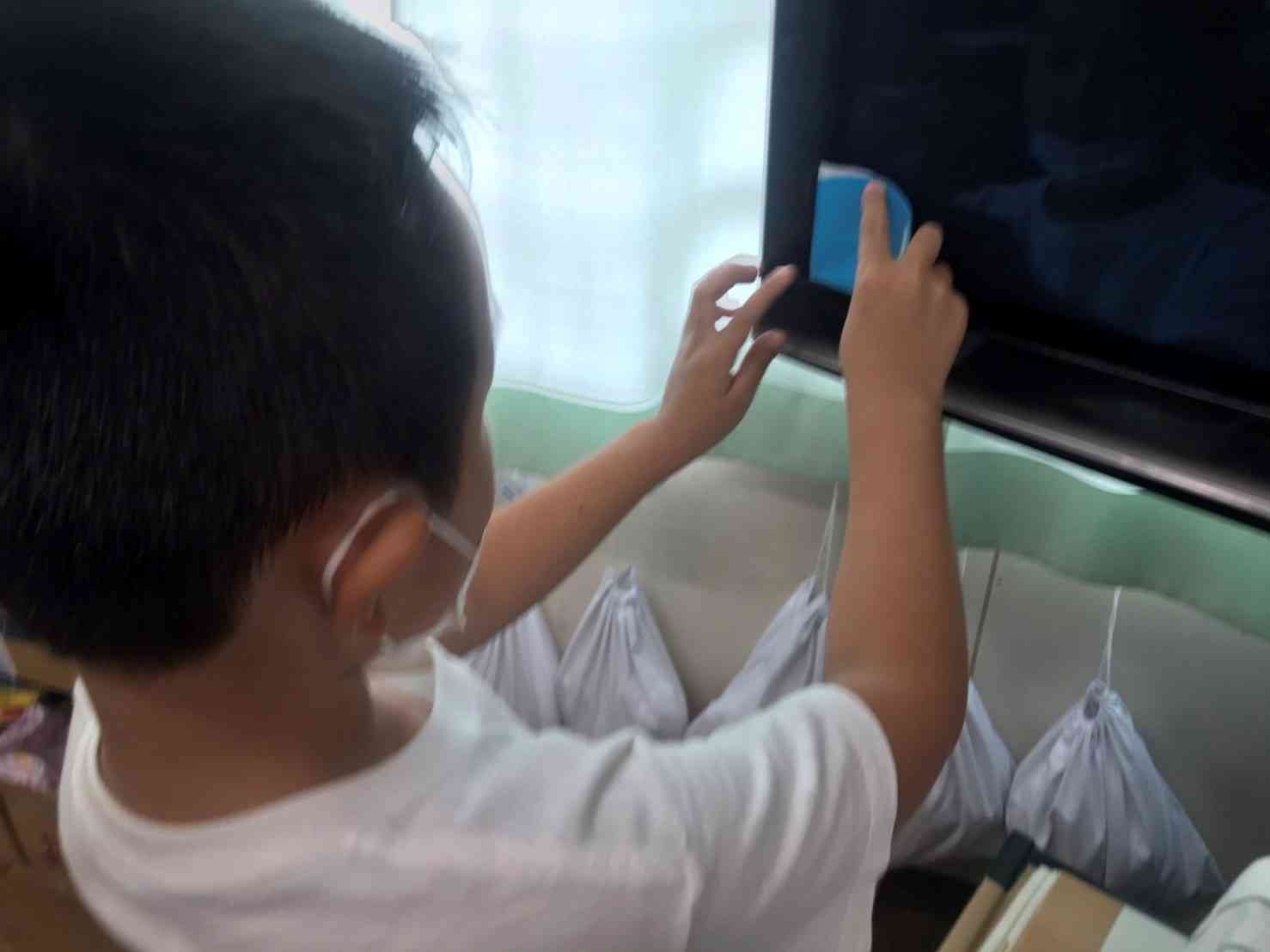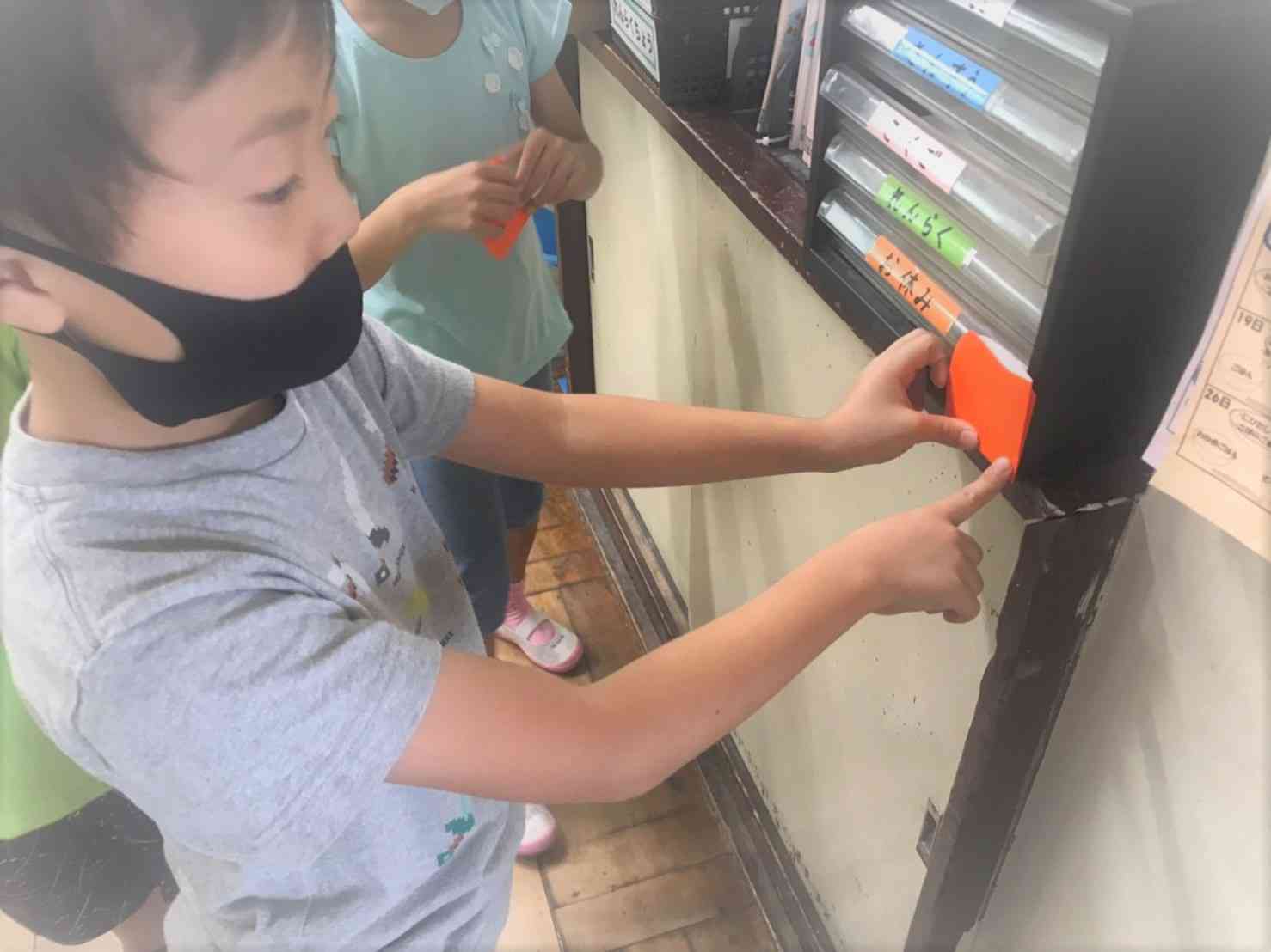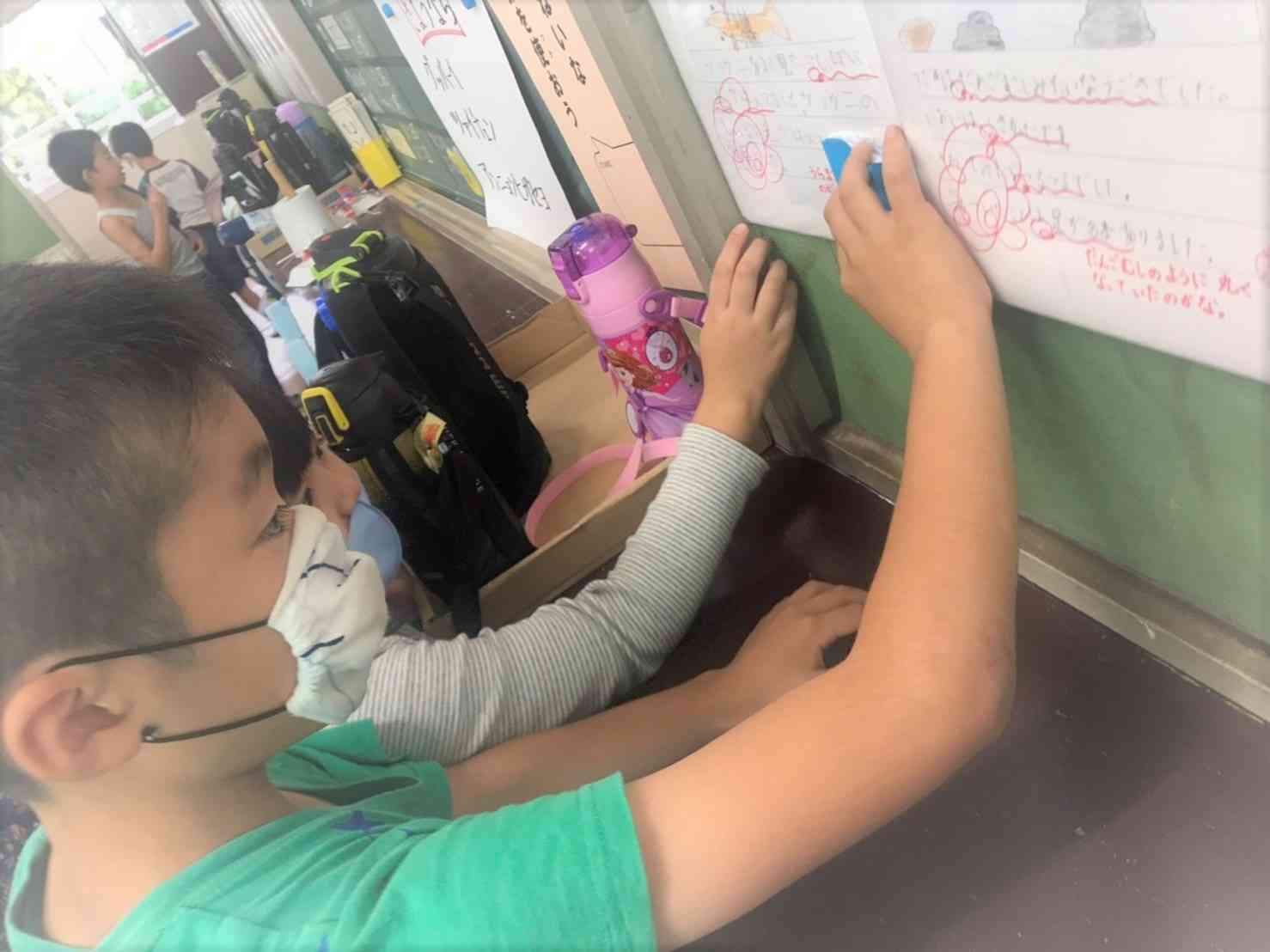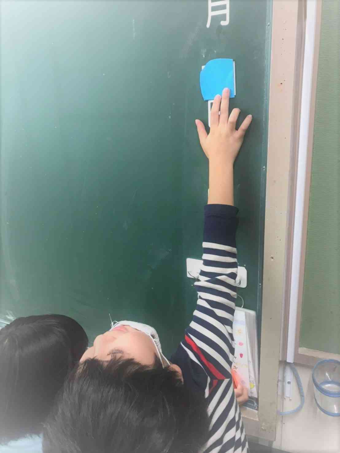 2年生の算数では、形の学習をしています。 辺と辺を合わせて直角を作り、教室内にある直角を探しました。 三角定規を使用しますので、一括購入をしたものを持たせてください。