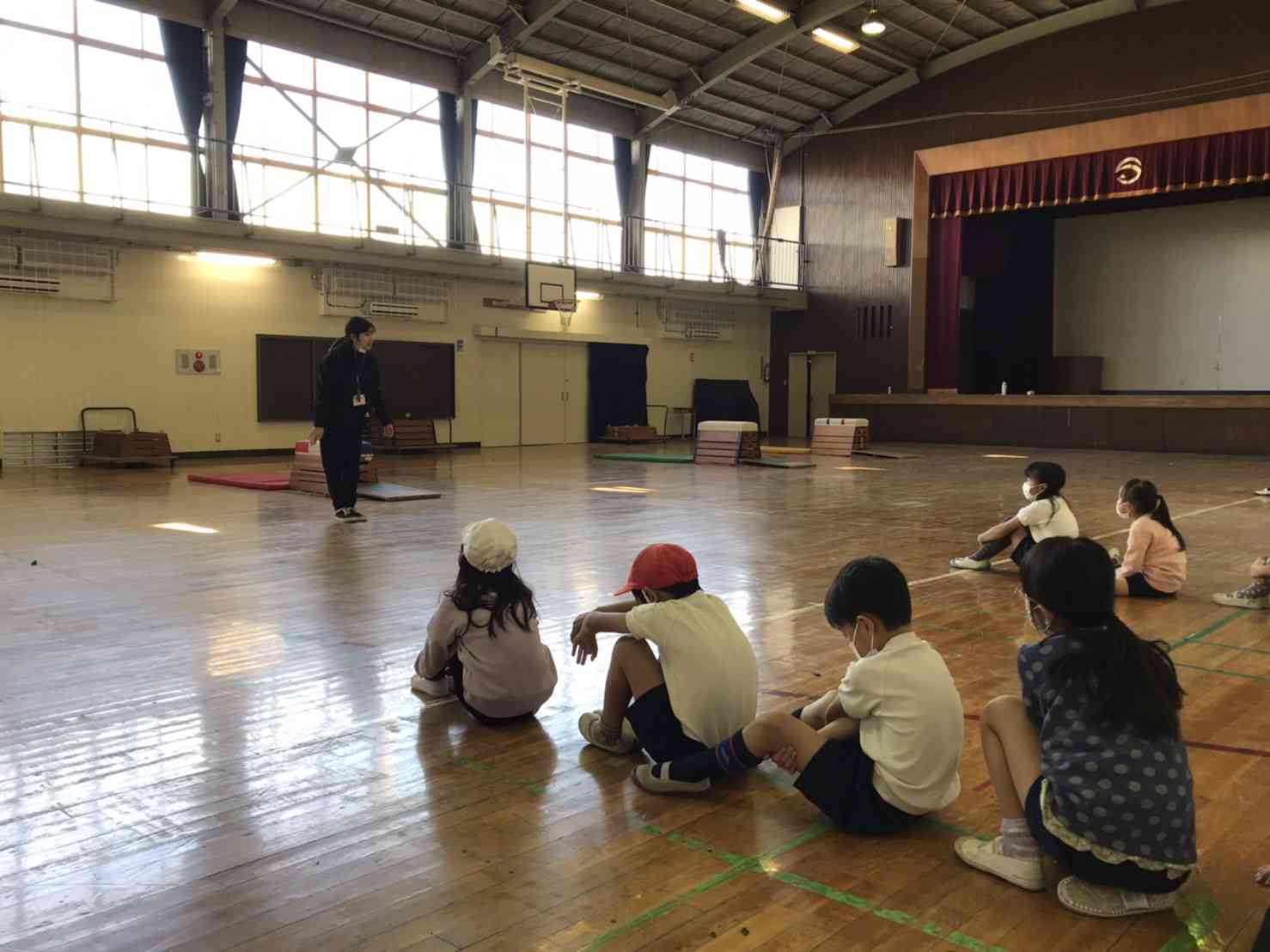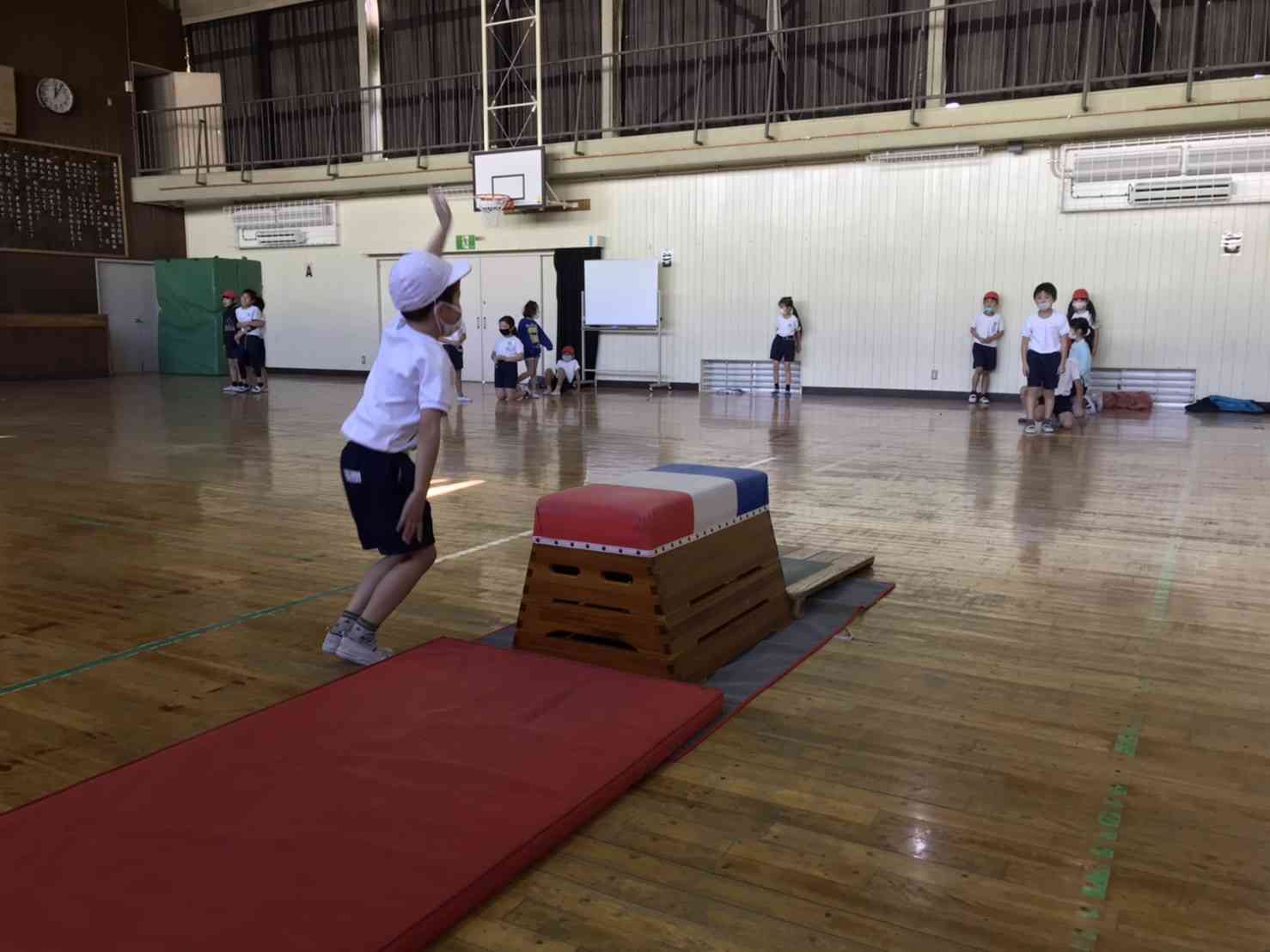 体育館では、跳び箱の学習をしています。 活動前に大切なことを確認し、準備や片付けをクラスの友達と協力して行いました。 跳び終わったら場の確認をして合図を出すなど、安全に気を付け楽しく活動することができました。