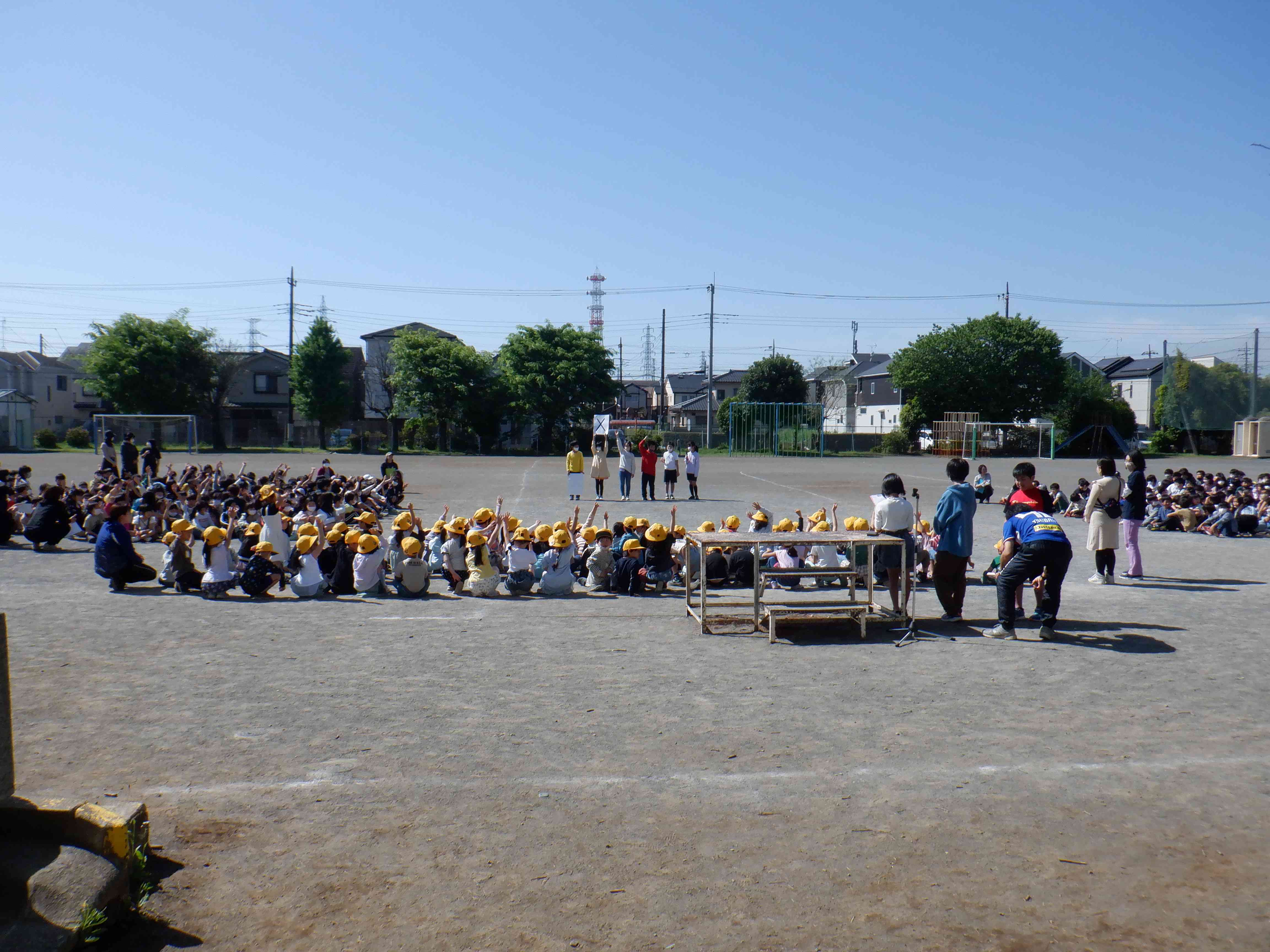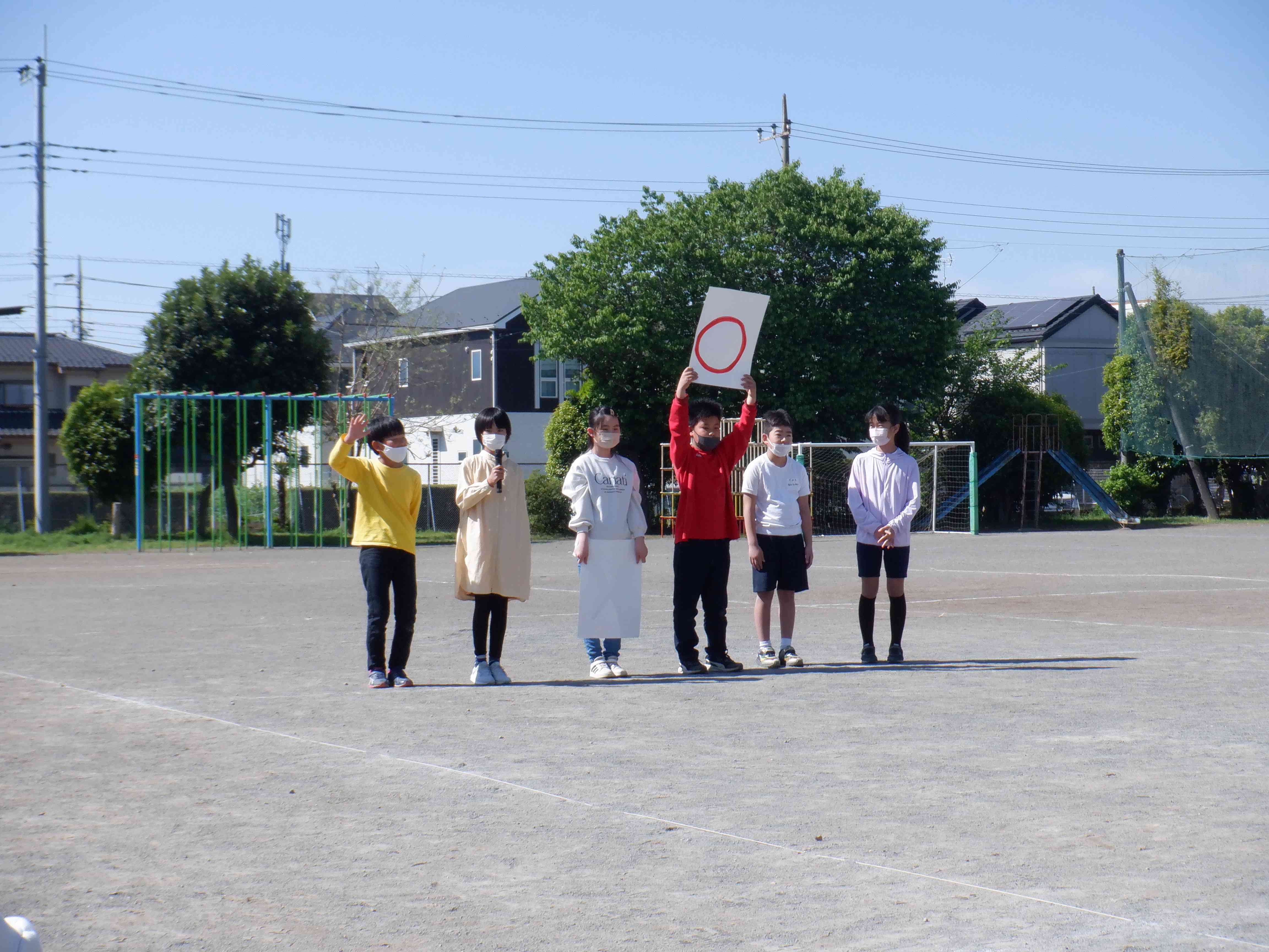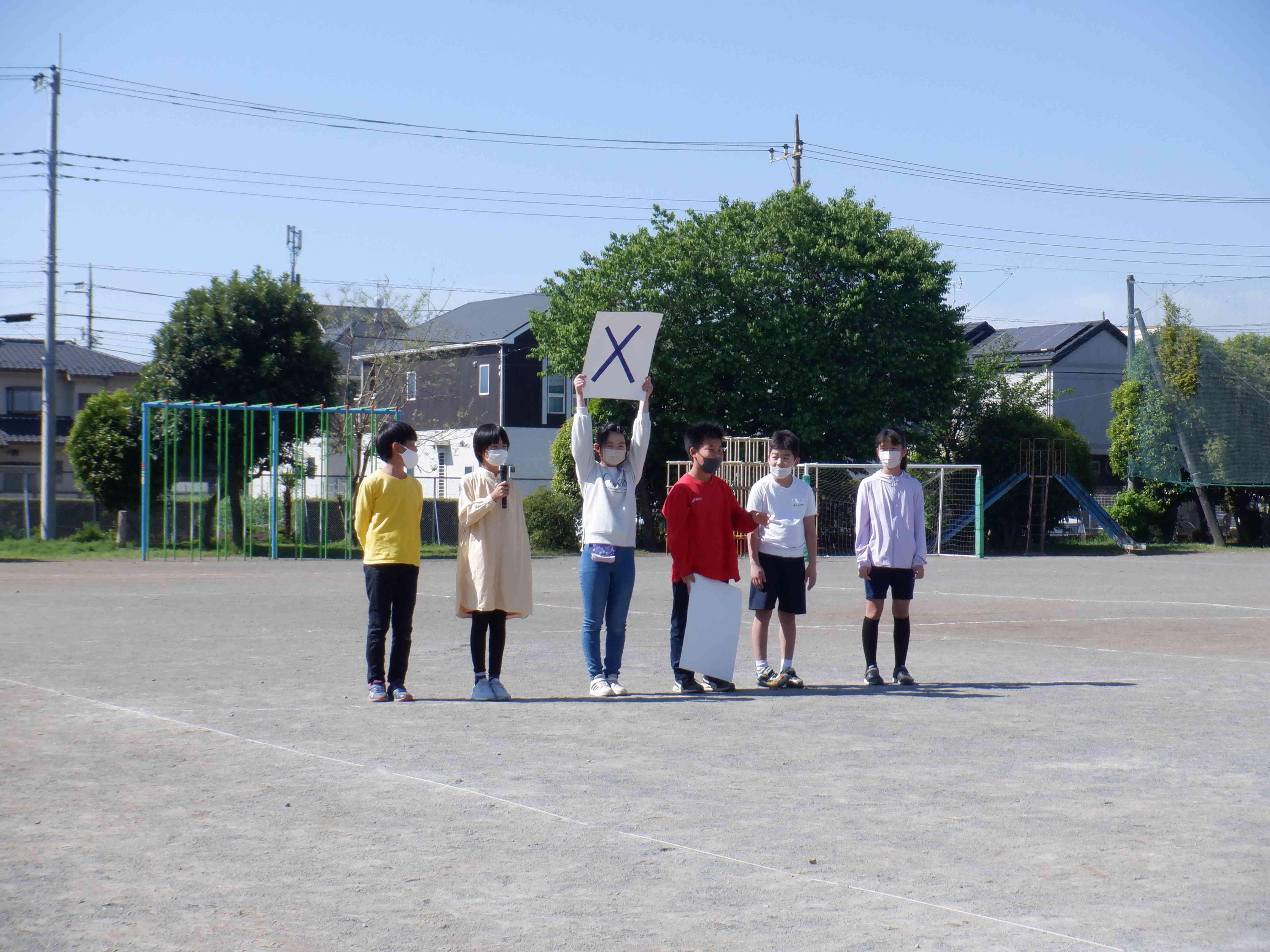 写真は五小クイズです。 代表委員が出す問題を〇か✕かで答えます。