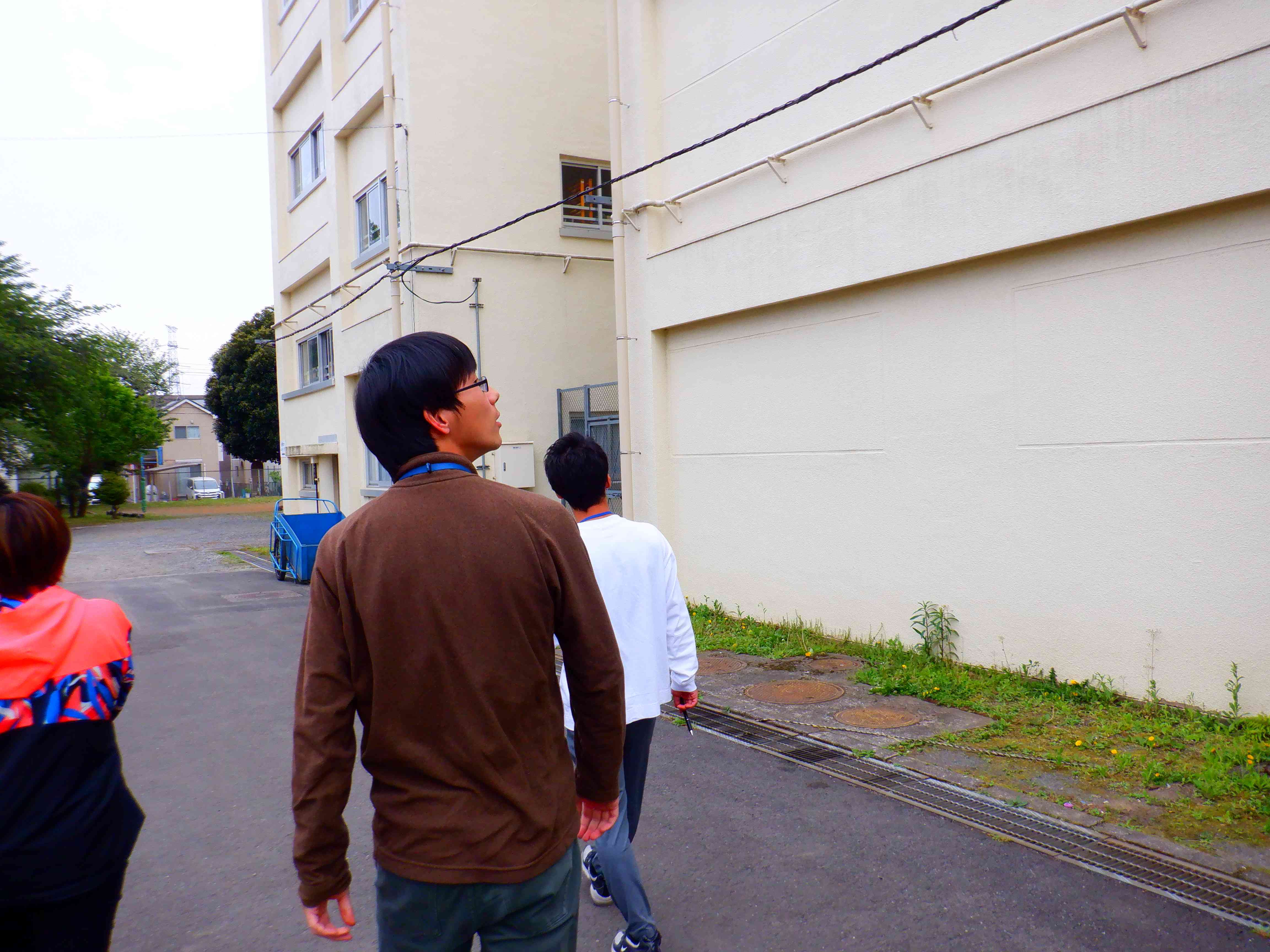 その後は安全点検です。先生たちが定期的に担当の場所の点検を行います。今日は校舎周りの点検をしました。