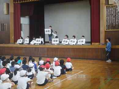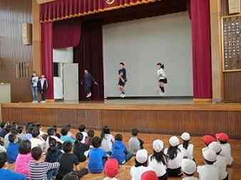 毎週木曜日の朝に集会を実施してます。 委員会紹介集会と短なわ集会の様子を紹介します。