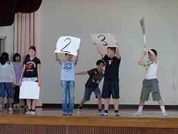 美化委員会が「正しい掃除のしかた」を説明してくれました。 大爆笑の劇とクイズでわかりやすく教えてくれました。 ニコニコと話を聞く態度がすばらしかったです。