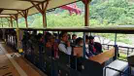 足尾銅山 トロッコに乗りました。 鉱道見学でナイトハイクを思いだしていました。