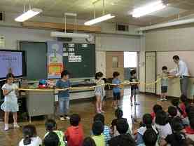 乳酸菌飲料メーカーのご協力を得て実施しました。 小腸や大腸の長さを模型で実感できました。 消化のしくみもわかりやすく説明してくれました。 最後のプレゼントに大喜びでした!!