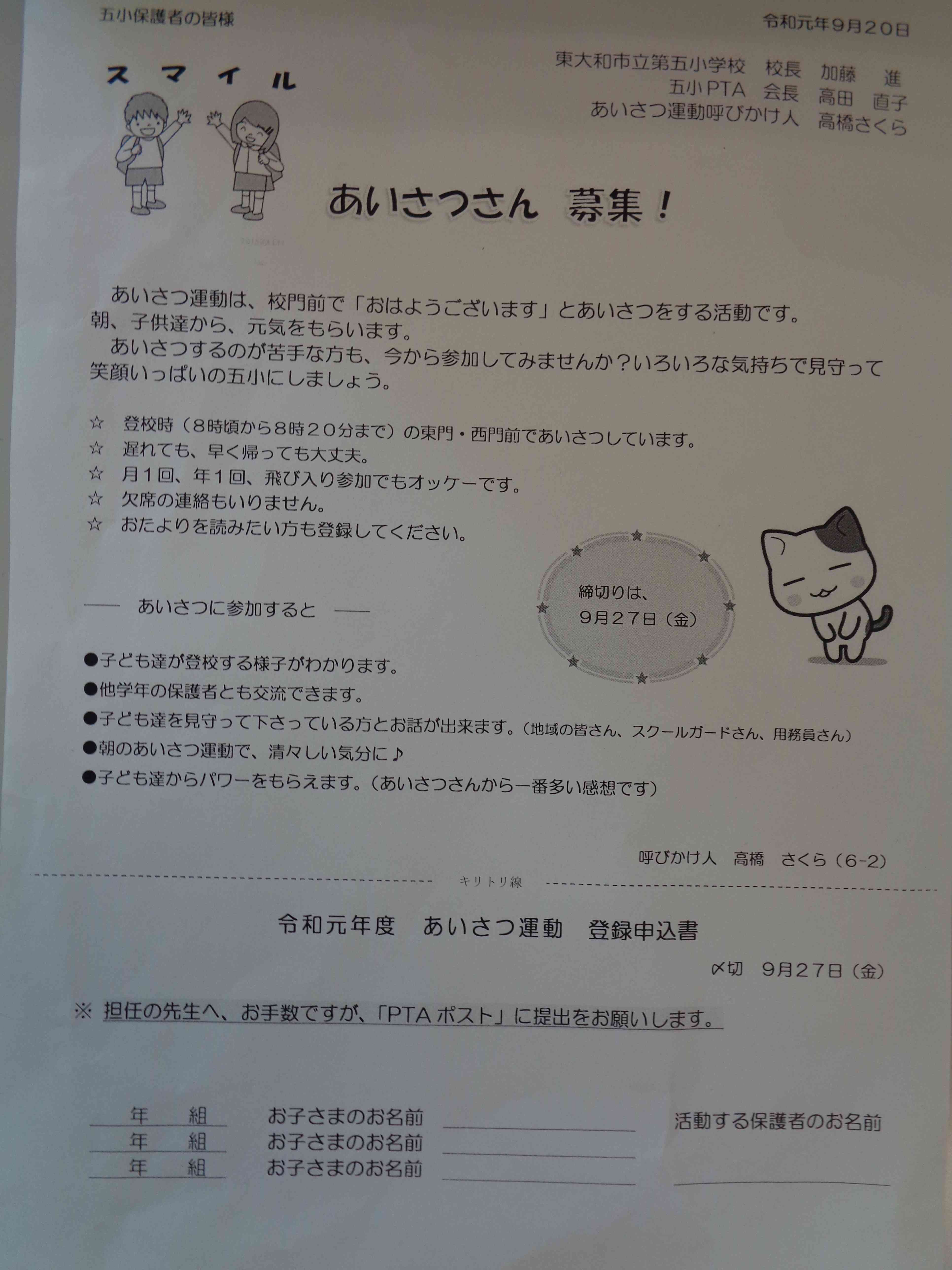 「あいさつさん」募集!!