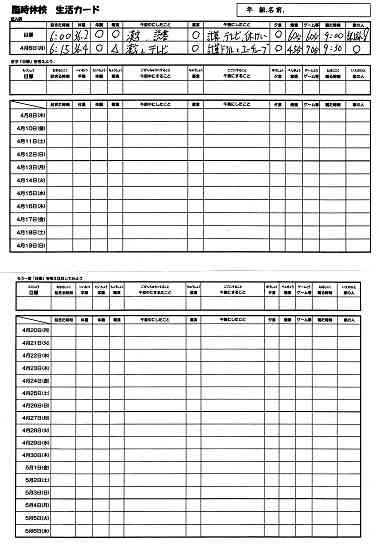臨時休校中の生活カード